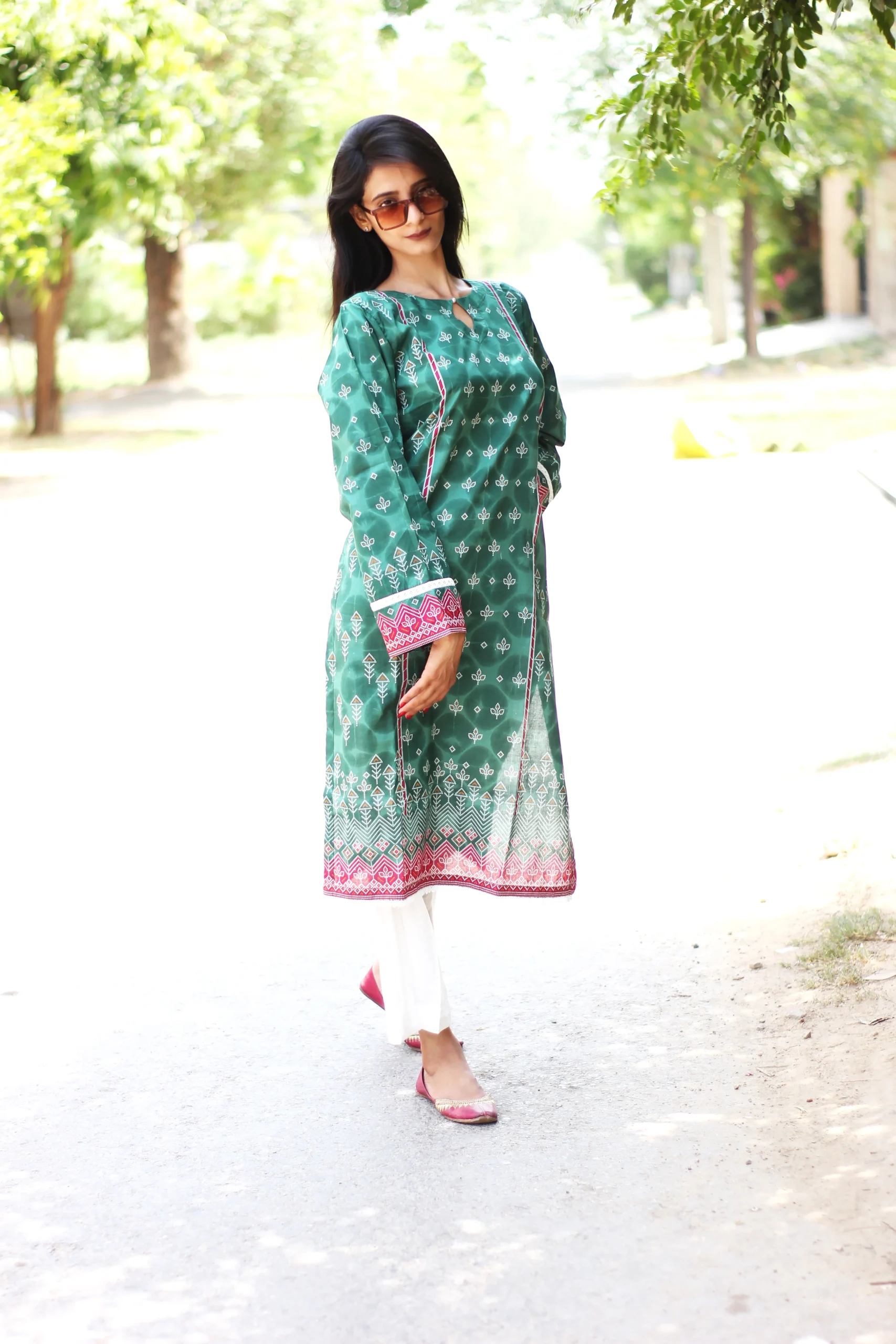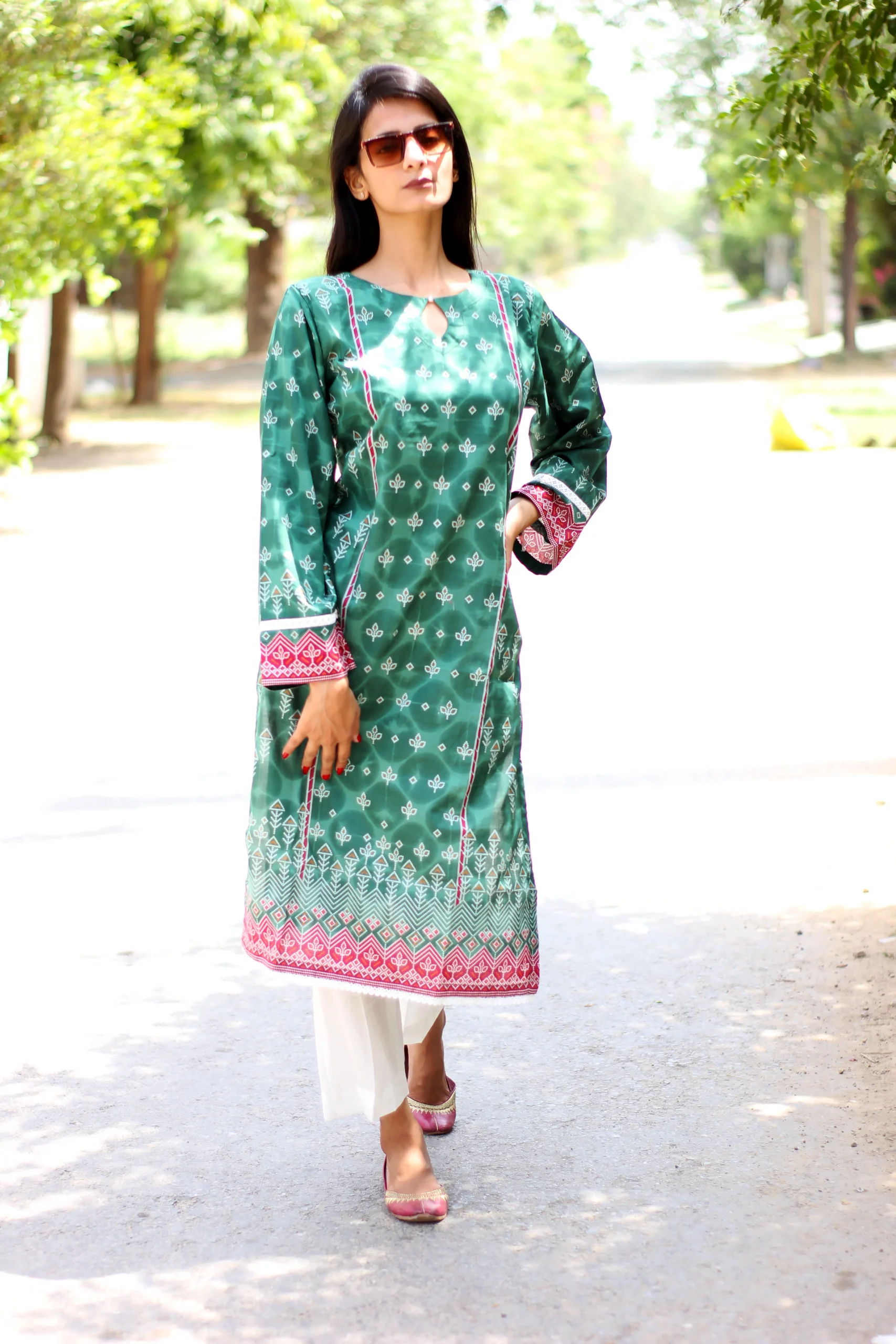 Shirt: Printed Lawn with lace embellishment