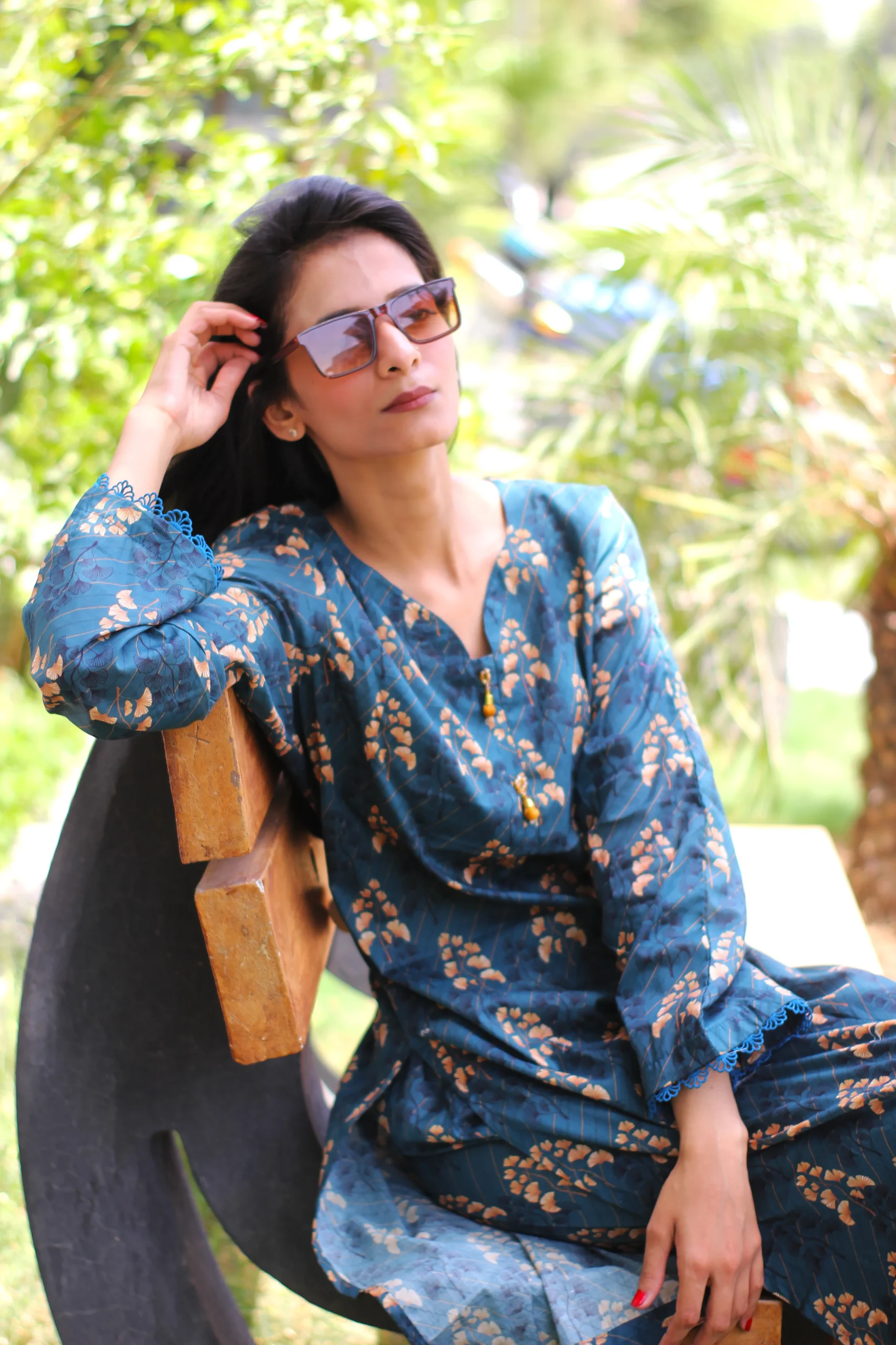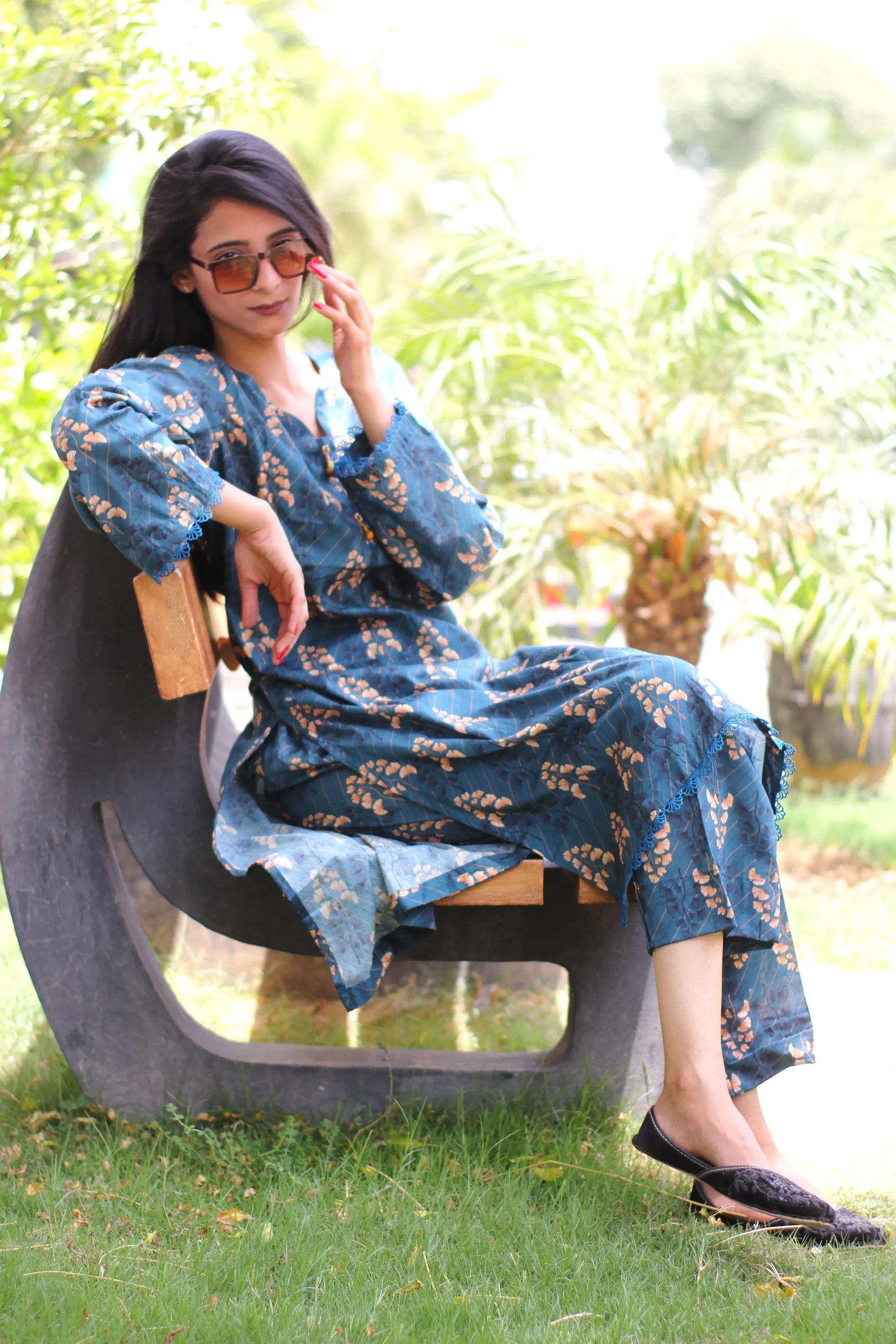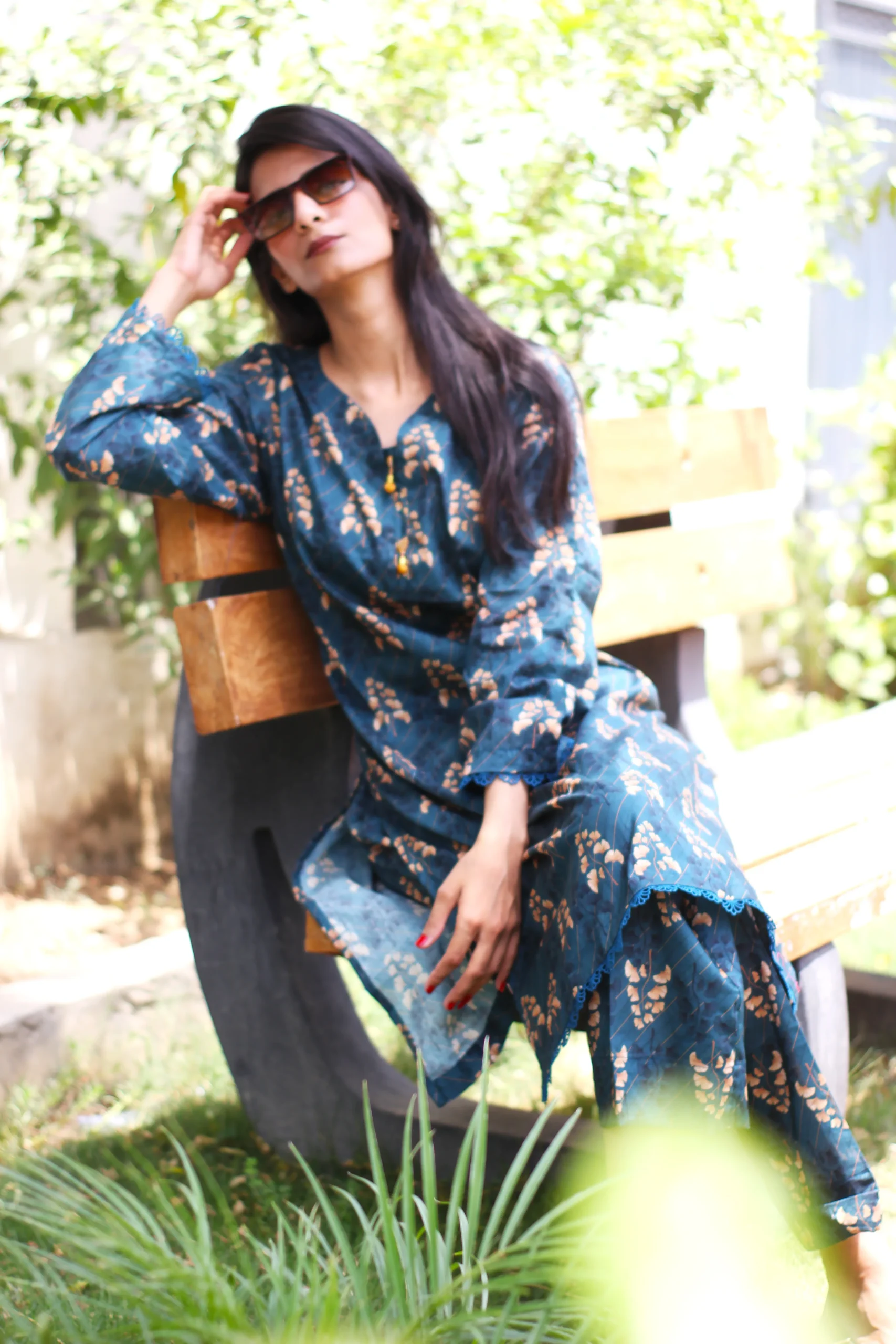 Shirt: Printed Lawn with lace embellishment and beads